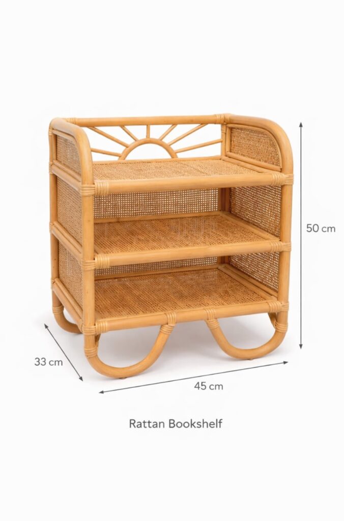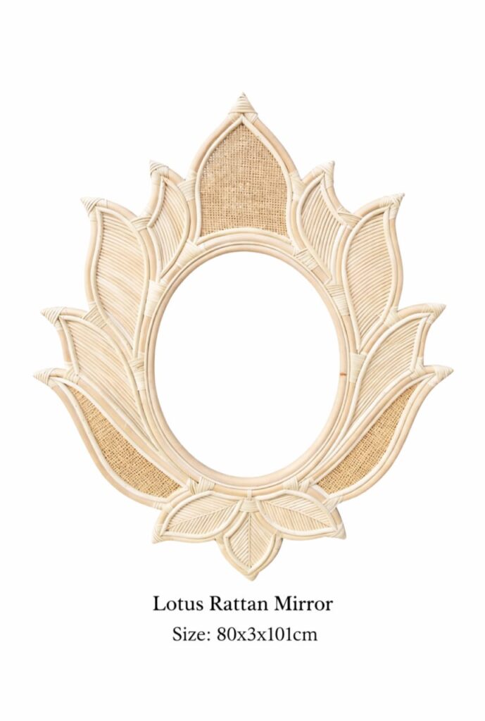 Description: Elegant rattan-framed corner mirror that enhances space with natural tropical character. Ideal for bedrooms and boutique interiors.