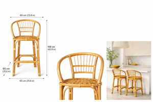 A modern handcraft rattan barstool with a clean tropical aesthetic, designed for both residential and commercial spaces.