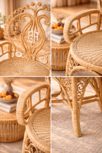 Elegant  handcrafted rotan care with interest detailing, warm natural tone and timeless design, perfect for cozy, minimalist or tropical-inspired interiors