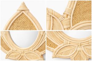 An elegant handcrafted rattan mirror with a unique floral design, perfect for adding a natural and artistic touch to any interior space.
